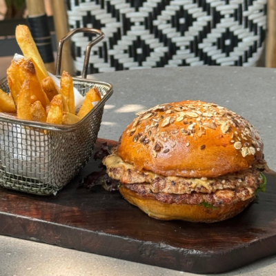 Juicy Grilled Chicken in peri peri spice rub with cheese melt, Gherkin , Lettuce , Garlic aioli & Bang Bang Sauce