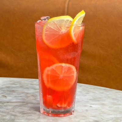 Muddled Fresh Ginger Chunks, Lemon Chunks with Sweet and Sour Soda Water
