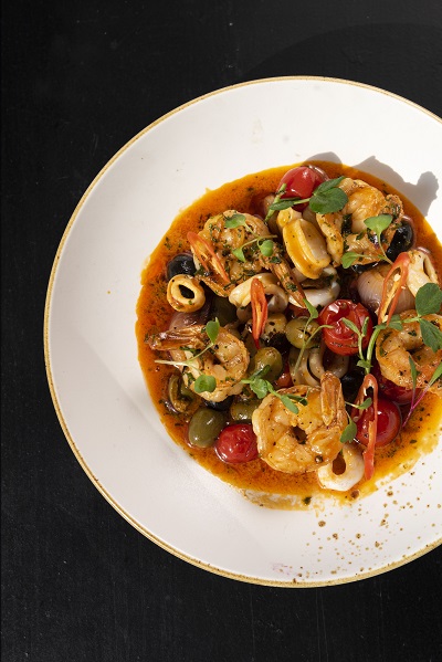 SUCCULENT PRAWNS & CALAMARI | SLOW COOKED GARLIC CONFIT | SMOKED CHILI BUTTER EMULSION | DEGLAZED WITH SPANISH ALBARIÑO WINE