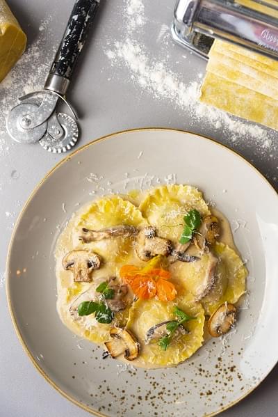 Chicken & Cheese Ravioli with Basil Butter Sauce